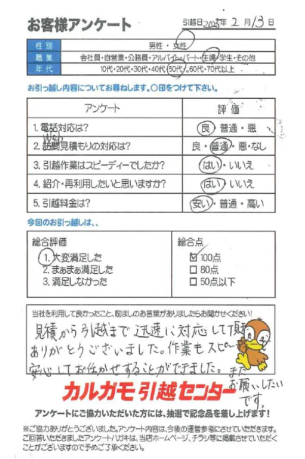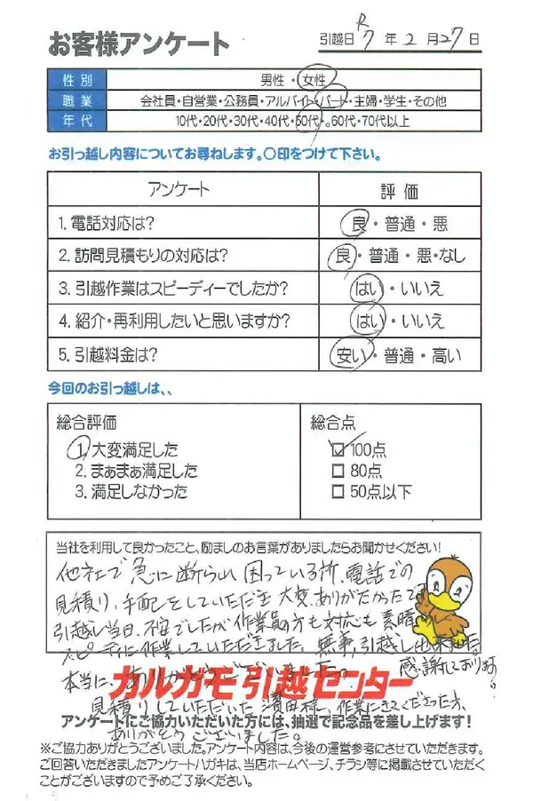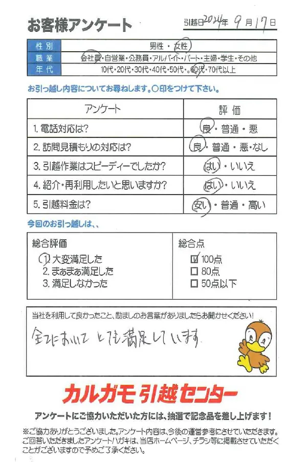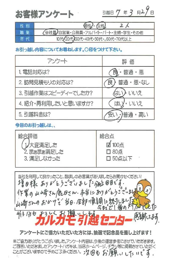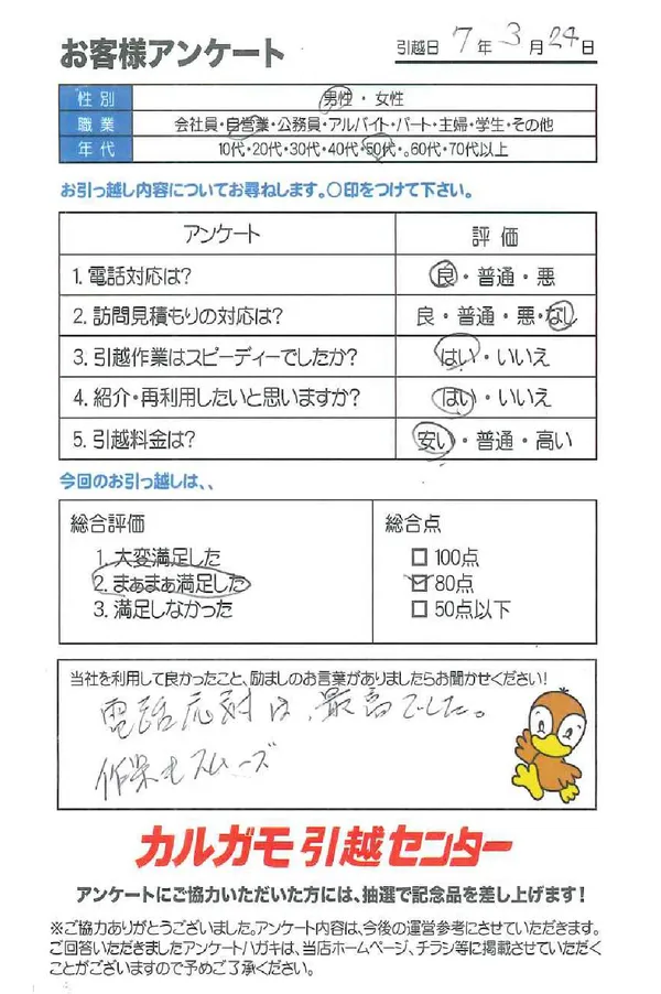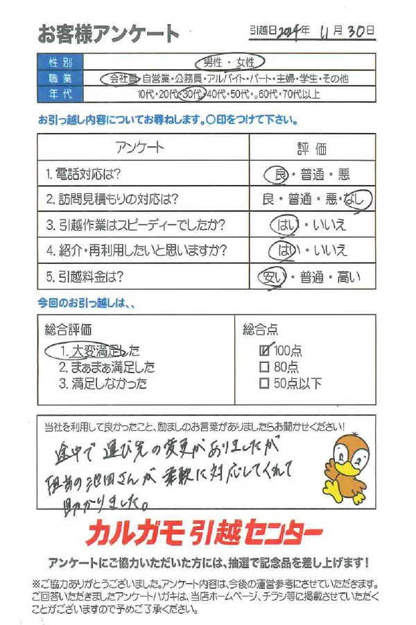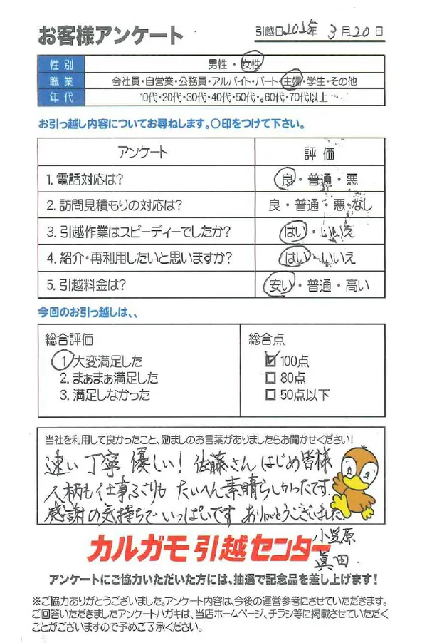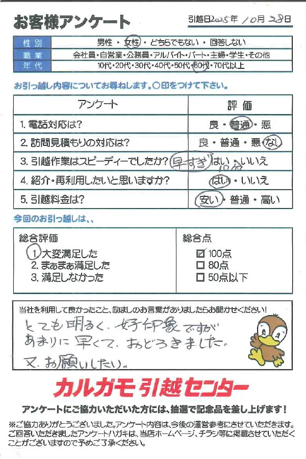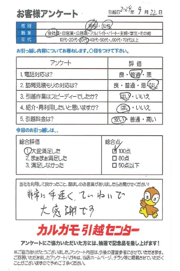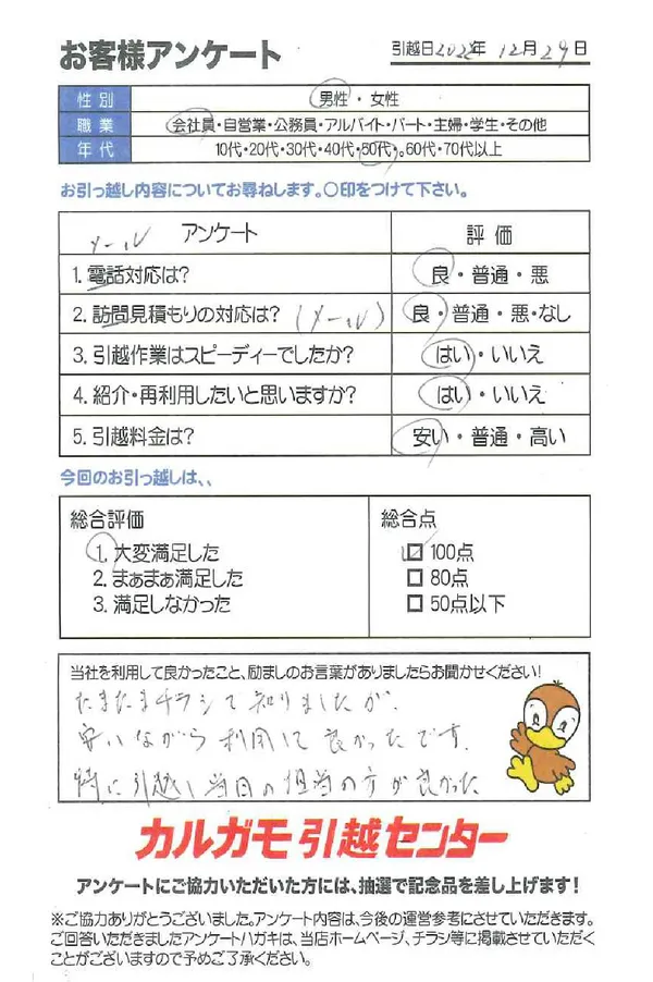 カルガモ引越しセンターをご利用いただいたお客様の体験談・口コミ・評判を掲載しています。